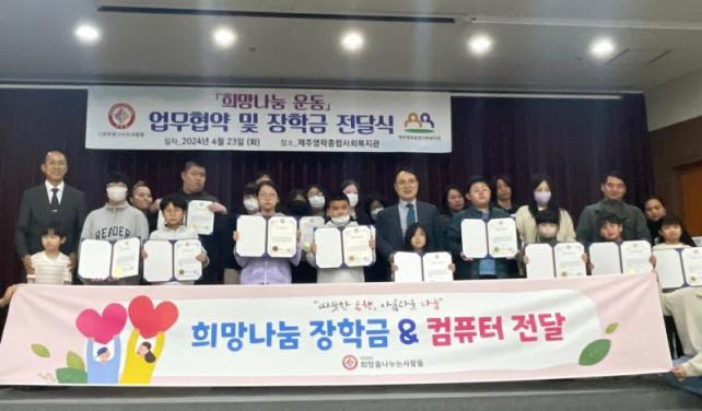 À̹ø Çù¾àÀ» ÅëÇØ (»ç)Èñ¸ÁÀ»³ª´©´Â»ç¶÷µéÀº Á¦ÁÖ¿µ¶ôÁ¾ÇÕ»çȸº¹Áö°üÀÌ ÃßõÇÑ Ãë¾à°èÃþ ¾Æµ¿ 12¸í¿¡°Ô 2³â µ¿¾È ¸Å¿ù 5¸¸ ¿ø, ÃÑ 1õ440¸¸ ¿øÀÇ ÀåÇбÝÀ» Áö¿øÇϱâ·Î Çß´Ù. ¶Ç Ãë¾à°èÃþ ¾Æµ¿ 3¸í¿¡°Ô ±³À°¿ë ÄÄÇ»Å͵µ Àü´ÞÇß´Ù.