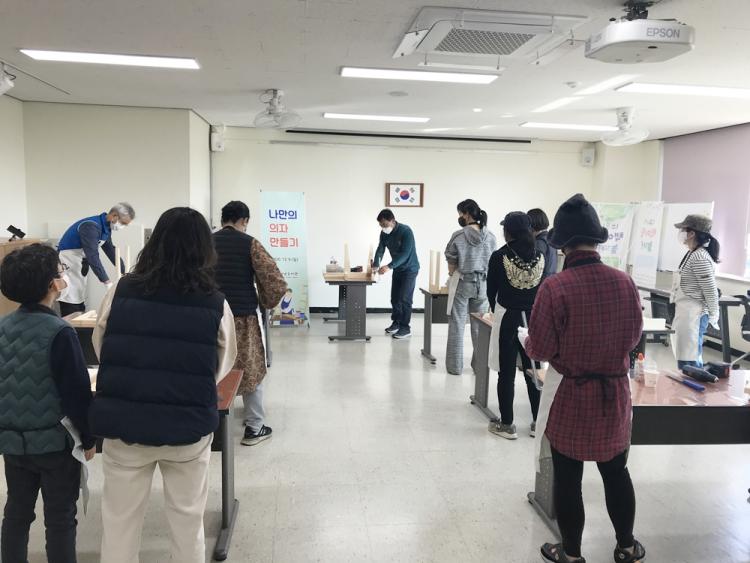 ³ª¸¸ÀÇ ÀÇÀÚ ¸¸µé±â ÇÁ·Î±×·¥Àº ¾ç¼®Ã¶(¸ñ°ø °»ç) °»çÀÇ Áöµµ·Î 12¿ù 6ÀÏ(ÀÏ) ¿ÀÀü, ¿ÀÈÄ °¢ 3½Ã°£¾¿ ¿î¿µÇÏ¿´°í, °¢ 10¸í¾¿ ÃÑ 20¸íÀÇ ¼ö°»ýÀÌ Âü¿©ÇÏ¿© ³ª¸¸ÀÇ DIY ¿ø¸ñ ½ºÅø ÀÇÀÚ ¸¸µé±â üÇèÀ» ÇÏ¿´´Ù.