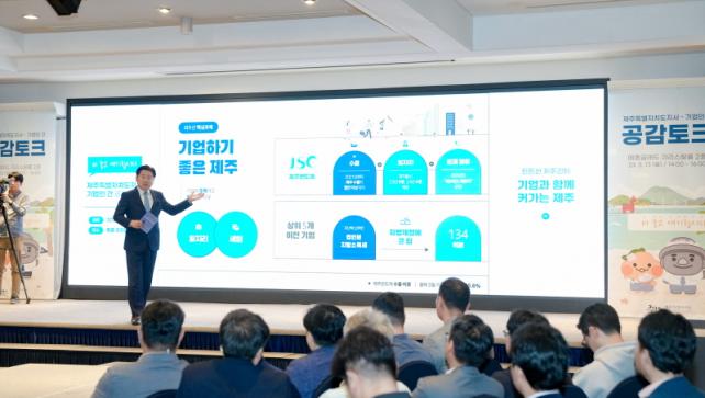 ÇÑÆí, Á¦ÁÖµµ¿Í Á¦ÁÖ±¹Á¦ÀÚÀ¯µµ½Ã°³¹ß¼¾ÅÍ(JDC), Á¦ÁÖÅ×Å©³ëÆÄÅ©, Á¦ÁÖâÁ¶°æÁ¦Çõ½Å¼¾ÅͰ¡ °øµ¿ ÁÖÃÖÇÑ À̳¯ Çà»ç¿¡´Â µµ³» 53°³ ±â¾÷ ÀÓÁ÷¿ø 100¿©¸íÀÌ Âü¼®Çß´Ù. Áö³ÇØ Á¦ÁÖ·Î ÀÌÀüÇÑ ½Å¼¼È£ ¢ß¹Ì½ºÅ͹ÐÅ© ´ëÇ¥°¡ À¯°¡°ø°øÀå ÀÚ°¡»ý»ê ÆÇ¸Å¿Í ±âÁ¸ °Å·¡Ã³ ǰ¸ñ ´Ù¾çȸ¦ À¯µµÇÑ »ç·Ê¸¦ °øÀ¯ÇßÀ¸¸ç, ¿À¿µÈÆ Áö»ç°¡ ¡®±â¾÷Çϱâ ÁÁÀº Á¦ÁÖ ¸¸µé±â¡¯¶õ ÁÖÁ¦·Î ±âÁ¶°¿¬À» ÁøÇàÇß´Ù.