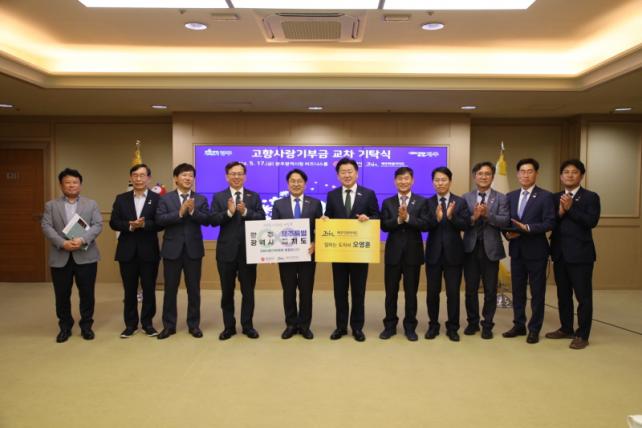 °±âÁ¤ ½ÃÀåÀº ¡°Á¦ÁÖ¿Í ±¤ÁÖ´Â ¿ª»ç ¹Ù·Î ¼¼¿ì±â¸¦ ³Ñ¾î¼ ´ëÇѹα¹ÀÇ ¹Ì·¡¸¦ âÁ¶Çϱâ À§ÇØ ¿¬´ë¡¤Çù·ÂÇØ¾ß ÇÑ´Ù¡±¸é¼ ¡°ÀÌ Çù¾àÀ» ÅëÇØ ÀαÇ, »ê¾÷, ¹®È, Àλ米·ù µî ¿©·¯ ºÐ¾ß¿¡ °ÉÃÄ ±í°í ´Ü´ÜÇÏ°Ô °á¼ÓÇϰڴ١±°í ¸»Çß´Ù.