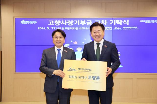 °±âÁ¤ ½ÃÀåÀº Á¦ÁÖ ³ó»ê¹° ¼Òºñ ÃËÁø¿¡ µ¿ÂüÇϱâ À§ÇØ Á¦ÁÖ Æ¯»êǰÀÎ Á¦ÁÖ°¨±ÖÀ» ´ä·ÊǰÀ¸·Î ¼±ÅÃÇßÀ¸¸ç, ¿À¿µÈÆ Áö»ç´Â ´ä·ÊǰÀ¸·Î ¸íÆÇ¹®±¸(³×ÀÌ¹Ö µµ³×À̼Ç)¸¦ °ñ¶ó ±¤ÁÖ±¤¿ª½Ã ¿¹¼úÀÇÀü´ç ´ë±ØÀå Á¼®¿¡ À̸§À» ³²±â°Ô µÆ´Ù.