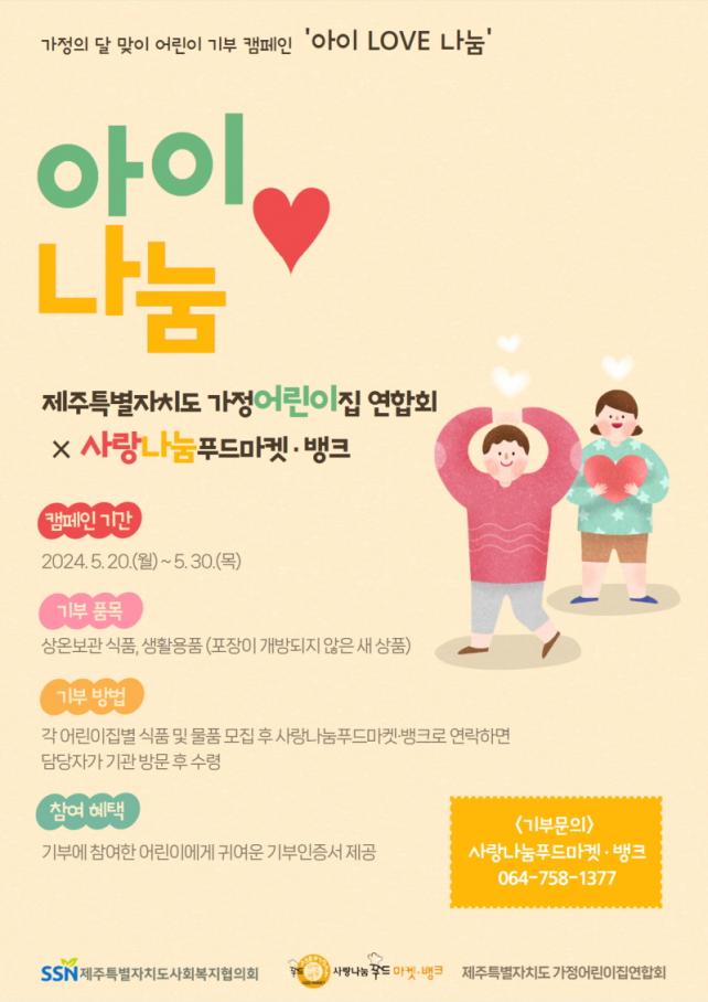 ¡®¾ÆÀÌ Love ³ª´®¡¯Ä·ÆäÀÎÀº °¡Á¤ÀÇ ´ÞÀ» ¸ÂÀÌÇÏ¿© °á½Ä À§±â¿¡ ³õÀÎ Áö¿ª ÁÖ¹ÎÀÇ »ýȰ ¿©°ÇÀ» °³¼±Çϱâ À§ÇØ ¾î¸°À̵éÀÌ Âü¿©ÇÏ´Â ½Äǰ ¹× »ýȰ¿ëǰ ±âºÎ Çà»çÀÌ´Ù.