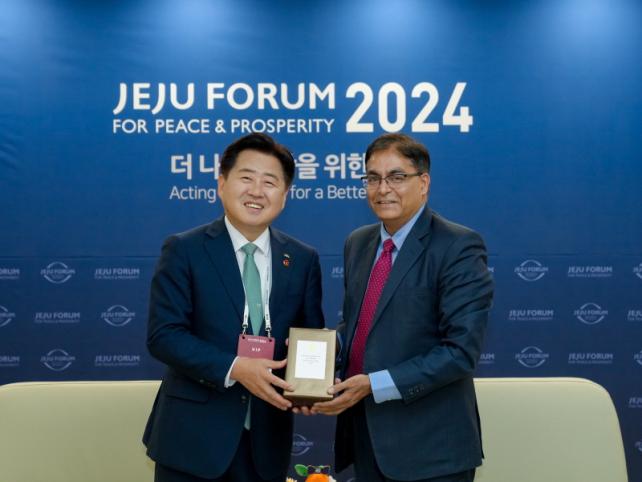 ¿À¿µÈÆ Áö»ç´Â 29ÀÏ ¿ÀÈÄ Á¦ÁÖ±¹Á¦ÄÁº¥¼Ç¼¾ÅÍ VIP·ë¿¡¼ ¡®Á¦19ȸ ÆòÈ¿Í ¹ø¿µÀ» À§ÇÑ Á¦ÁÖÆ÷·³¡¯ ¼¼¼Ç Âü¼®Â÷ Á¦ÁÖ¸¦ ¹æ¹®ÇÑ ¾Æ¹Ô Äí¸¶¸£(Amit Kumar) ÁÖÇÑ Àεµ ´ë»ç¿Í ¸é´ãÇß´Ù.