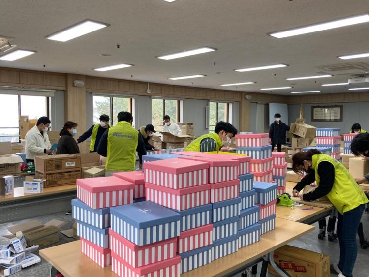 ¹æÇÑŰƮ´Â µû¶æÇÑ °Ü¿ï³ª±â¸¦ À§ÇÑ ¸ñµµ¸®, ÇÖÆÑ, º¸¿Âº´, ¸¶½ºÅ© µîÀ¸·Î ±¸¼ºµÇ¾î 300¸íÀÇ Ãë¾÷Àå¾ÖÀÎ ¹× Àå¾ÖÀΰí¿ë »ç¾÷ÁÖ¿¡°Ô ¹ß¼ÛÇÏ¿´´Ù. °í°æÈñ °üÀåÀº ¡°Äڷγª19·Î ¾î·Æ°í Èûµç ½Ã±â ¸ðµÎ ´Ù °°ÀÌ À̰ܳÂÀ¸¸é ÁÁ°Ú´Ù¡±¶ó°í ÀüÇÏ¿´´Ù.