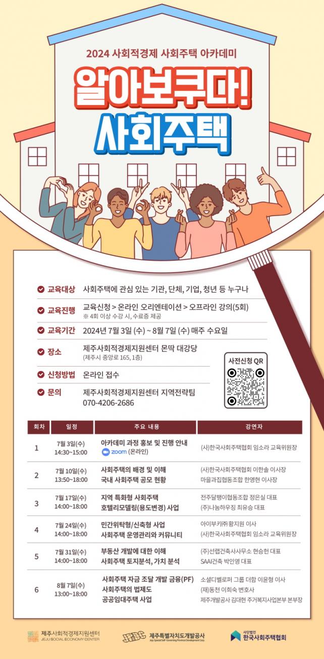 Á¦ÁÖÆ¯º°ÀÚÄ¡µµ°³¹ß°ø»ç¿Í »ç´Ü¹ýÀÎ Çѱ¹»çȸÁÖÅÃÇùȸ¿Í ÇÔ²² ÇÏ´Â À̹ø ¾ÆÄ«µ¥¹Ì´Â Á¦ÁÖ Áö¿ªÀÇ ÁÖ°Å ¾ÈÁ¤È¿Í »çȸÁÖÅà ¿î¿µ ÁÖü ¹ß±¼À» ¸ñÇ¥·Î ¸ÅÁÖ ¼ö¿äÀÏ ÃÑ 6ÁÖ¿¡ °ÉÃÄ ÁøÇàµÈ´Ù.