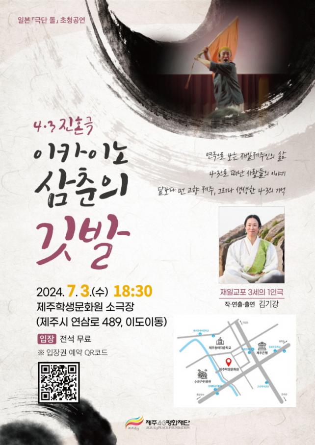¡®ÀÌÄ«ÀÌ³ë »ïÃáÀÇ ±ê¹ß¡¯Àº ÇØ¹æ Á÷ÈÄ µ¶¸³ Á¶±¹À» ÇâÇÑ ¼¶»ç¶÷µéÀÇ Èñ¸Á°ú ¿Á¤, ±×¸®°í 4‧3À» ÇÇÇØ ¶°³ª¿Â °íÇâÀ» ±×¸®´Â Á¦ÀÏÁ¦ÁÖÀεéÀÇ »îÀ» ´Ù·ç°í ÀÖ´Ù. °ø¿¬Àº 7¿ù 3ÀÏ ¼ö¿äÀÏ ¿ÀÈÄ 7½Ã Á¦ÁÖÇлý¹®È¿ø ¼Ò±ØÀå¿¡¼ ¿¸°´Ù.