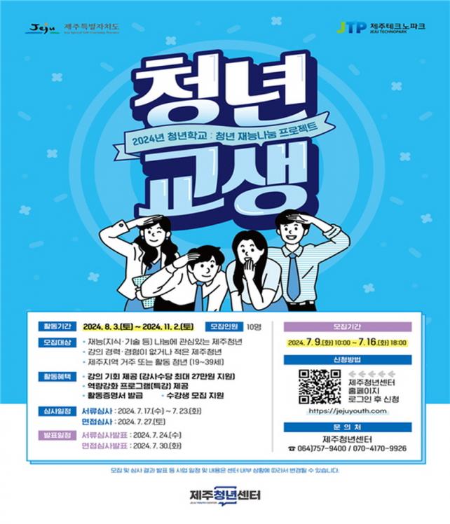 Á¦ÁÖû³â¼¾ÅÍ´Â ¡®Ã»³â±³»ý¡¯ Âü¿©ÀÚ¿¡°Ô ¡â°ÀÇ ½Ã¿¬ ¹× Àü¹®°¡ÀÇ Çǵå¹é ¡âÃÖ´ë 3ȸ °ÀÇ ¿î¿µ °æÇè ±âȸ Á¦°ø ¡âÃÖ´ë 27¸¸¿ø °»ç·áÁö¿ø ¡â°ÀÇ ¿î¿µºñ Áö¿ø ¡âȰµ¿Áõ¸í¼ ¹ß±Þ ¡â¿ª·® °È ±³À°(½ºÇÇÄ¡ µî) Á¦°ø ¡â ¼ö°»ý ¸ðÁý ¹× È«º¸¸¦ Áö¿øÇÑ´Ù.