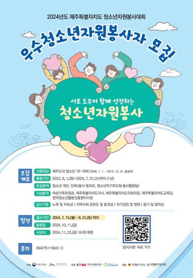 ¸ðÁý ´ë»óÀº Á¦ÁÖÁö¿ª û¼Ò³â(10~18¼¼/2006. 1. 1. ~ 2014. 12. 31. Ãâ»ýÀÚ) °³ÀÎ ¹× ´Üü(µ¿¾Æ¸®, û¼Ò³âÀڱ⵵Çü ºÀ»çȰµ¿ÆÀ)À¸·Î ÃÖ±Ù 1³â(2023. 8. 1.~2024. 7. 31.)°£ Áö¿ª»çȸºÀ»çȰµ¿À» ½ÇõÇÑ Ã»¼Ò³âÀÌ´Ù.