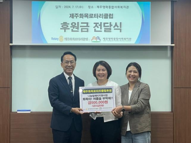¶ÇÇÑ Á¦ÁÖȸñ·ÎŸ¸®Å¬·´Àº 2017³â 4¿ù ⸳ÀÌ·¡·Î ¾î·Á¿î ÀÌ¿ôÀ» À§ÇÑ ¼º±Ý°ú ¹°Ç°À» ²ÙÁØÈ÷ ÈÄ¿øÇÏ¸ç ´Ù °°ÀÌ ´õºÒ¾î »ì¾Æ°¡´Â Á¦ÁÖÁö¿ª»çȸ¸¦ ¸¸µé°í ÀÖÀ¸¸ç, À̹ø ÈÄ¿øÀ» °è±â·Î ¡°È¸ñ¾Æ! ¿©¸§À» ºÎÅ¹ÇØ!!¡±»ç¾÷À» ÁøÇàÇÒ ¿¹Á¤ÀÌ´Ù.