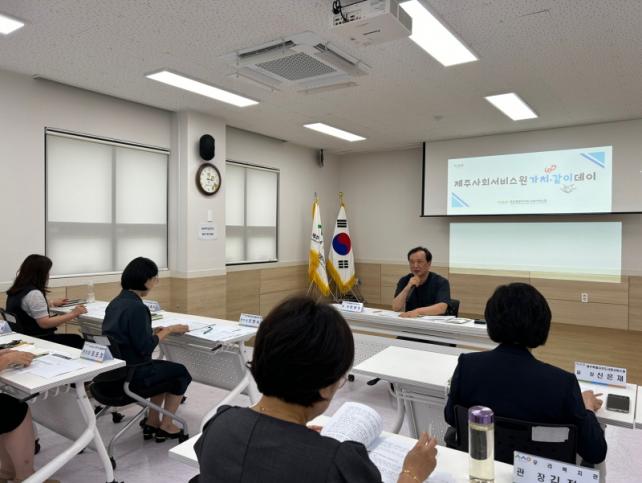 À̳¯ Çà»ç¿¡¼´Â ¹®¿øÀÏ ¿øÀåÀÌ Á¦ÁÖ»çȸ¼ºñ½º¿ø ÁßÀå±â ¹ßÀü°èȹ(¡¯24~¡¯28) ¼ö¸³ ¹æÇâÀ» ¼³¸íÇϰí, Á¦ÁÖÀαǰ»çÇùȸ ±èÁöÇý Àü¹®°»ç¸¦ ÃÊûÇÏ¿©¡®¼ºÀÎÁö ¿ª·® ¹× ¾ç¼ºÆòµî±³À°¡¯À» ½Ç½ÃÇß´Ù.