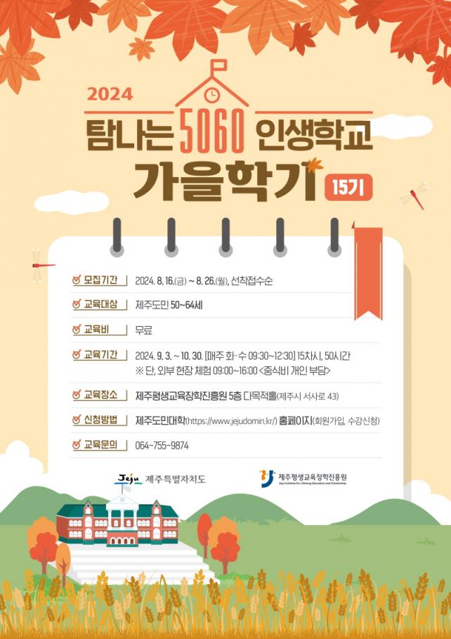 ¸ðÁýÁ¤¿øÀº 35¸íÀÌ´Ù. Á¦ÁÖµµ¹Î´ëÇÐ(jejudomin.kr) »çÀÌÆ®¸¦ ÅëÇØ ¼±Âø¼ø ¸ðÁýÇϸç, ¸ðÁý ¸¶°¨ÀÏÀº 8¿ù 26ÀÏÀÌ´Ù. ±³À°ºñ´Â ¹«·á´Ù. (¹®ÀÇ: 755-9874)