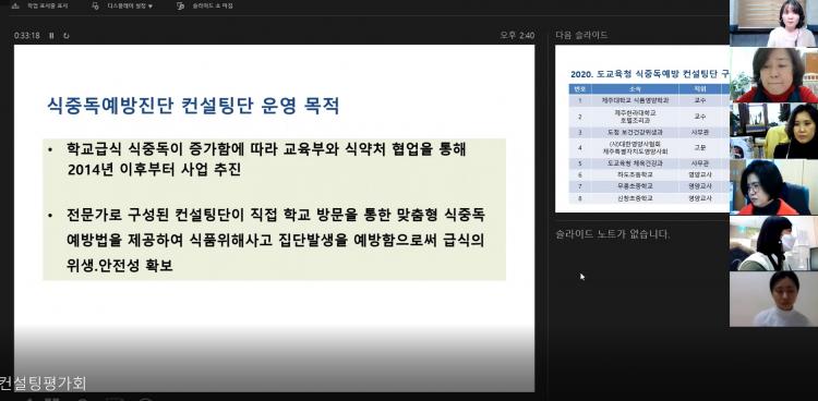 À̹ø 2020³â ½ÄÁßµ¶¿¹¹æ ÄÁ¼³ÆÃ´Ü ¿Â¶óÀÎ Æò°¡È¸¿¡´Â, ÄÁ¼³ÆÃ À§¿ø ¹× ÄÁ¼³ÆÃ ´ë»ó Çб³ ¿µ¾ç±³»ç, ±³À°Ã» ¾÷¹« ´ã´çÀÚ µî 20¿©¸íÀÌ Âü¼®ÇÏ¿´À¸¸ç, º» »ç¾÷¿¡ ´ëÇÑ Æò°¡¿Í ÇâÈÄ ¹ßÀüÀûÀÎ ¿î¿µ ¹æ¾È¿¡ ´ëÇØ ´Ù¾çÇÑ ÀǰßÀ» ÁÖ°í ¹Þ¾Ò´Ù.