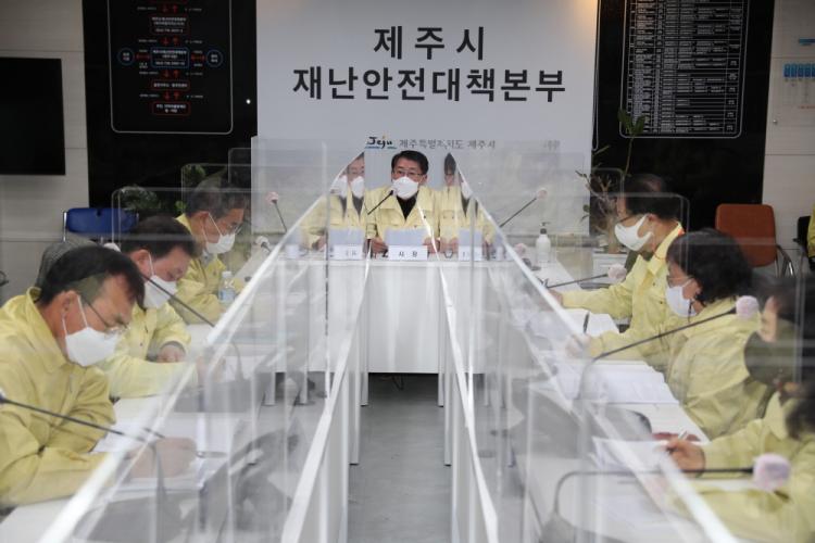 ¾Èµ¿¿ì Á¦ÁÖ½ÃÀåÀº ¿À´Â 1. 17.±îÁö ¿¬ÀåµÈ ¡®Á¦ÁÖÇü »çȸÀû °Å¸®µÎ±â 2´Ü°è+¥á¡¯ ÈļÓÁ¶Ä¡ »çÇ×À» ±ÝÀÏÁß Â÷Áú¾øÀÌ ¸¶¹«¸® Çϵµ·Ï ´çºÎÇϰí, Á¾±³½Ã¼³, À¯Èï½Ã¼³, ½Ä´ç¡¤Ä«Æä µî ´ÙÁßÀÌ¿ë½Ã¼³ µî¿¡ ´ëÇÑ Á¡°ËÀ» °ÈÇϰí À§¹Ý ½Ã °¨¿°º´ ¿¹¹æ ¹× °ü¸®¿¡ °üÇÑ ¹ý·ü¿¡ µû¶ó °í¹ß ¹× °úÅÂ·á ºÎ°ú µî °·ÂÈ÷ ´ëÃ³ÇØ ³ª°¥ °ÍÀ» ÁÖ¹®ÇÏ¿´À¸¸ç, ¶ÇÇÑ, ¼Ò¸ðÀÓ È°µ¿ ÀÚÁ¦ µî »çȸÀû °Å¸®µÎ±â¿Í ¹æ¿ª¼öÄ¢ Áؼö¿¡µµ ½Ã¹Îµé²²¼ Àû±ØÀûÀ¸·Î µ¿ÂüÇØ ´Þ¶ó°í °Åµì ´çºÎ ÇÏ¿´´Ù.