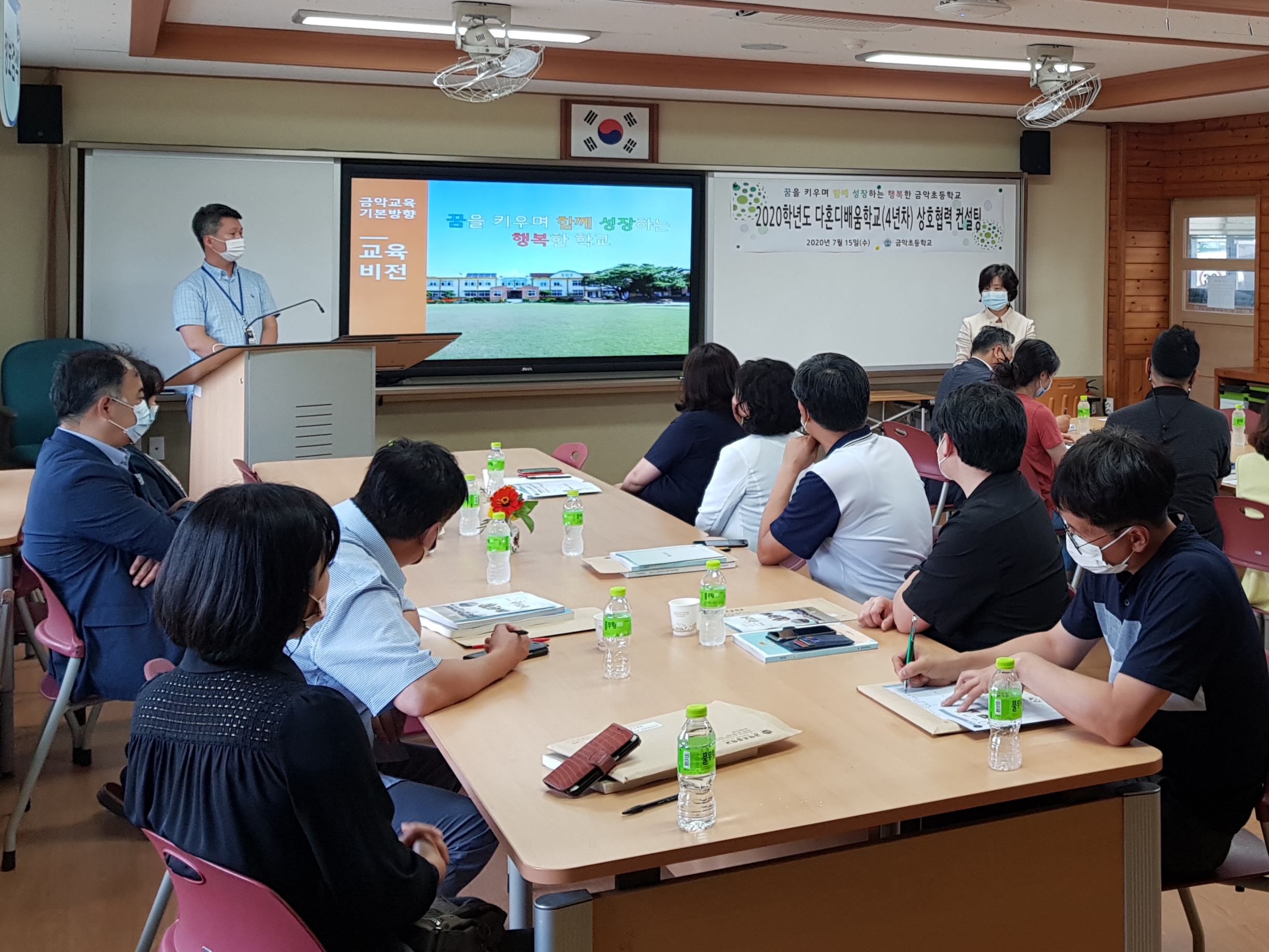[Á¦ÁÖµµ¹Î½Å¹® = Á¤½ÂÇö ±âÀÚ] ±Ý¾ÇÃʵîÇб³(±³Àå Á¶Á¤Èñ)´Â Áö³­ 7¿ù 15ÀÏ(¼ö) Çб³ µµ¼­°ü¿¡¼­ ´ã´ç ÀåÇлç´ÔÀ» ºñ·ÔÇÑ ´ÙÈ¥µð¹è¿òÇб³ ±³À°È°µ¿ °æÇèÀÌ Ç³ºÎÇÑ 9¸íÀÇ ÄÁ¼³ÅÏÆ®¿Í ÇÔ²² ¡®´ÙÈ¥µð¹è¿òÇб³ 4³âÂ÷ »óÈ£Çù·Â ÄÁ¼³ÆÃ¡¯À» ½Ç½ÃÇÏ¿´´Ù. ¡®²ÞÀ» Ű¿ì¸ç ÇÔ²² ¼ºÀåÇÏ´Â ÇູÇÑ Çб³¡¯ ±³À°ºñÀü ½ÇÇöÀ» À§ÇØ 2017Çг⵵ ´ÙÈ¥µð¹è¿òÇб³ ±âƲ¸¶·ÃÀ» ½ÃÀÛÀ¸·Î ¡®´ÙÈ¥µð¹è¿òÇб³ 4³â°£ÀÇ ¼º°ú¸¦ µ¹¾Æº¸°í Áö¼Ó°¡´ÉÇÑ ±³À°È°µ¿ ½ÇõÀ» À§ÇØ ¾î¶»°Ô ¿î¿µÇÒ °ÍÀΰ¡?¡¯ ´ëÁÖÁ¦¸¦ ¼³Á¤ÇÏ°í ´ÙÈ¥µð¹è¿òÇб³ 4´ë ÃßÁø°úÁ¦ÀÎ ¹ÎÁÖÀû Çб³ ¿î¿µ, âÀÇÀû ±³À°°úÁ¤ ½ÇÇö, Àü¹®Àû ÇнÀ°øµ¿Ã¼ ±¸Ãà, À±¸®Àû »ýȰ°øµ¿Ã¼ ±¸ÃàÀ» ¼ÒÁÖÁ¦·Î 4°³ÀÇ ºÐ°ú·Î ³ª´² ´Ù¾çÇÑ ÀǰßÀ» ³ª´©´Â ±âȸ°¡ µÇ¾ú´Ù. ÇÔ²² Âü¿©ÇÑ ±³¿øµéÀº ¡°À̹ø »óÈ£Çù·Â ÄÁ¼³ÆÃÀ» ÅëÇØ ´ÙÈ¥µð¹è¿òÇб³ ¼º°ú¸¦ Áö¼ÓÀûÀ¸·Î ¿î¿µÇϱâ À§ÇÑ µ¿±âºÎ¿©°¡ µÇ¾ú°í ±³À°°øµ¿Ã¼°¡ ÇÔ²² °í¹ÎÇÏ°í ³ª´©´Â °úÁ¤¿¡¼­ ¼ÒÅëÇÏ°í °ø°¨ÇÏ´Â °è±â°¡ µÇ¾ú´Ù¡± ¶ó°í ÀüÇß´Ù.