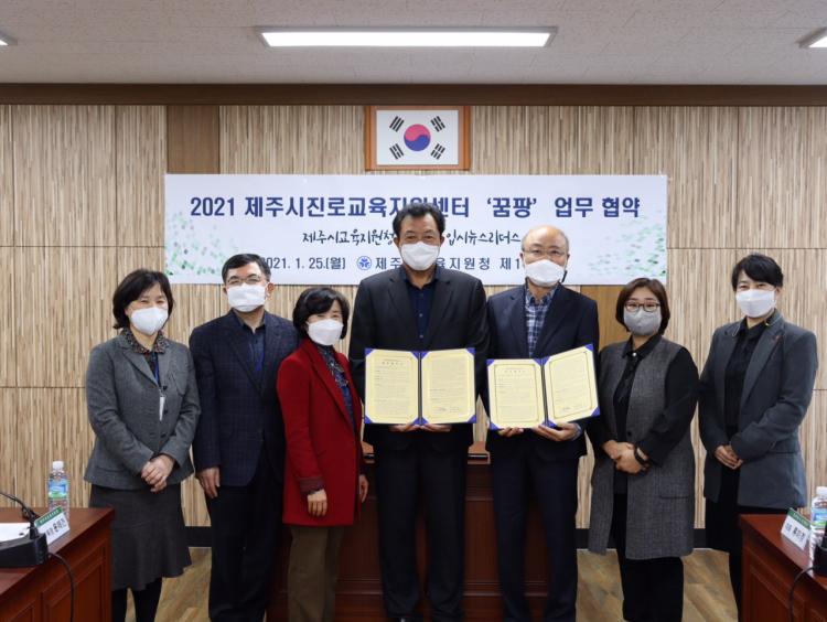 [Á¦ÁÖµµ¹Î½Å¹® = ¿À½ÂÅà ±âÀÚ] Á¦Áֽñ³À°Áö¿øÃ»(±³À°Àå À±Å°Ç)Àº 1¿ù 25ÀÏ(¿ù) ÀԽôº½º¸®´õ½º(¼¾ÅÍÀå ±è¼øÂù)¿Í¡®2021³â Á¦ÁÖ½ÃÁø·Î±³À°Áö¿ø¼¾ÅÍ ²ÞÆÎ¡¯¿î¿µÀ» À§ÇÑ ¾÷¹«Çù¾àÀ» ü°áÇÏ¿´´Ù.