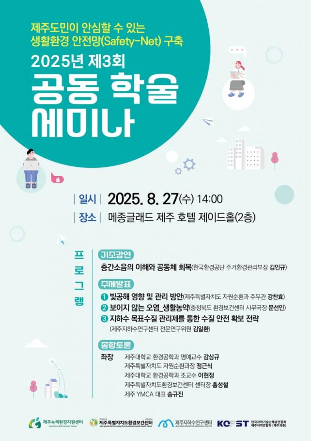 À̹ø ¼¼¹Ì³ª´Â Á¦ÁÖ³ì»öȯ°æÁö¿ø¼¾ÅÍ, Á¦ÁÖÆ¯º°ÀÚÄ¡µµ ȯ°æº¸°Ç¼¾ÅÍ, Á¦ÁÖÁöÇϼö¿¬±¸¼¾ÅÍ, Çѱ¹°úÇбâ¼ú´ÜüÃÑ¿¬ÇÕȸ Á¦ÁÖÁö¿ª¿¬ÇÕȸ µî 4°³ ±â°üÀÌ °øµ¿ ÁÖ°üÇϸç, ȯ°æ °ü·Ã °ø¹«¿ø°ú Àü¹®°¡, °ü½ÉÀÖ´Â Á¦ÁÖµµ¹Î µîÀÌ Âü¼®ÇÒ ¿¹Á¤ÀÌ´Ù.
