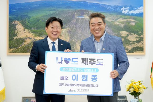 ¿À¿µÈÆ Á¦ÁÖµµÁö»ç´Â 2ÀÏ ¿ÀÈÄ 1½Ã µµÃ» Áý¹«½Ç¿¡¼ ÀÌ¿øÁ¾ ¾¾¿¡°Ô Á¦ÁÖµµ È«º¸´ë»ç À§ÃËÀåÀ» ¼ö¿©Çß´Ù.