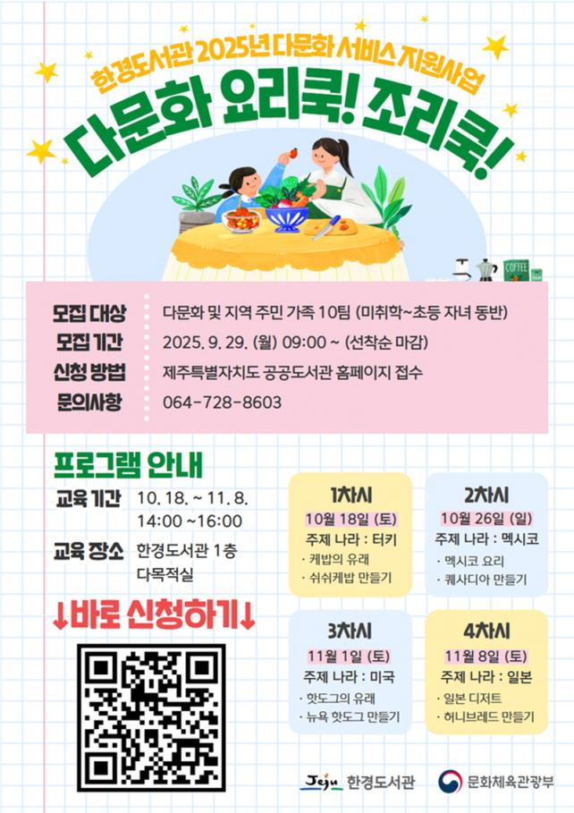 ¡®´Ù¹®È ¿ä¸®Äî! Á¶¸®Äî!¡¯Àº ÇѰ浵¼°üÀÌ ¼øÂ÷ÀûÀ¸·Î ¿î¿µ ÁßÀÎ ´Ù¹®È ÀÌÇØ ÇÁ·Î±×·¥ÀÇ ³× ¹øÂ° ÀÏÁ¤À¸·Î, ±×°£ ¡ã7¿ù ¡®±×¸²Ã¥À¸·Î ¸¸³ª´Â ´Ù¾ç¼º Ôס¯, ¡ã8¿ù ¡®³îÀÌ·Î ¶°³ª´Â ¼¼°è¿©Ç࡯, ¡ã9¿ù ¡®±×¸²Ã¥ Å×¶óÇÇ ¿ä°¡¡¯ ¸¦ ¿î¿µÇÑ ¹Ù ÀÖ´Ù.