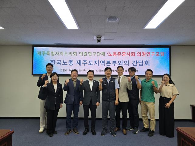 [Á¦ÁÖµµ¹Î½Å¹® = ¿À½ÂÅà ±âÀÚ] Á¦ÁÖÆ¯º°ÀÚÄ¡µµÀÇȸ ÀÇ¿ø¿¬±¸´Üü ¡®Á¦ÁÖ ³ëµ¿Á¸Áß»çȸ ÀÇ¿ø¿¬±¸Æ÷·³¡¯(´ëÇ¥ÀÇ¿ø ¾ç°æÈ£)Àº 2025³â ÈĹݱâ Á¦ÁÖÁö¿ª ³ëµ¿Çö¾È °£´ãȸÀÇ ¼¼¹øÂ°, ³×¹øÂ° °£´ãȸ·Î Á¦ÁÖÆ¯º°ÀÚÄ¡µµ°ø¹«Á÷³ëµ¿Á¶ÇÕ°ú Çѱ¹³ëÃÑÁ¦ÁÖµµÁö¿ªº»ºÎ¿Í °ø½Ä °£´ãȸ¸¦ °®°í, ÇöÀå ³ëµ¿ÀÚµéÀÇ ¸ñ¼Ò¸®¸¦ Á÷Á¢ µè°í Á¤Ã¥Àû ´ëÀÀ ¹æÇâÀ» ¸ð»öÇß´Ù.