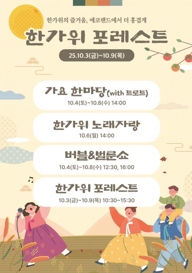 ¿À´Â 10¿ù 3ÀÏ(±Ý)ºÎÅÍ 9ÀÏ(¸ñ)±îÁö ÁøÇàµÇ´Â ¡®ÇѰ¡À§ Æ÷·¹½ºÆ®¡¯´Â ¿Â °¡Á·ÀÌ ÀÚ¿¬ ¼Ó¿¡¼­ ÇÔ²² Áñ±â´Â ÇѰ¡À§¸¦ ÄܼÁÆ®·Î ±âȹµÆ´Ù.