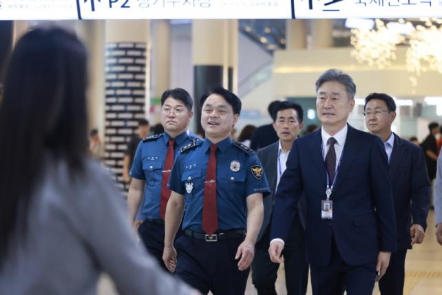 °íÆò±â ûÀåÀº °øÇ× ³» È¥Àâ »óȲ°ú ±³ÅëÁú¼­ À¯Áö, ¹üÁË ¿¹¹æÈ°µ¿À» Á÷Á¢ Á¡°ËÇϰí, Á¦ÁÖ°øÇ×°ø»ç »óȲ½ÇÀ» ¹æ¹®ÇÏ¿© °øÇ×°ø»ç Á÷¿øµéÀ» °Ý·ÁÇß´Ù.
