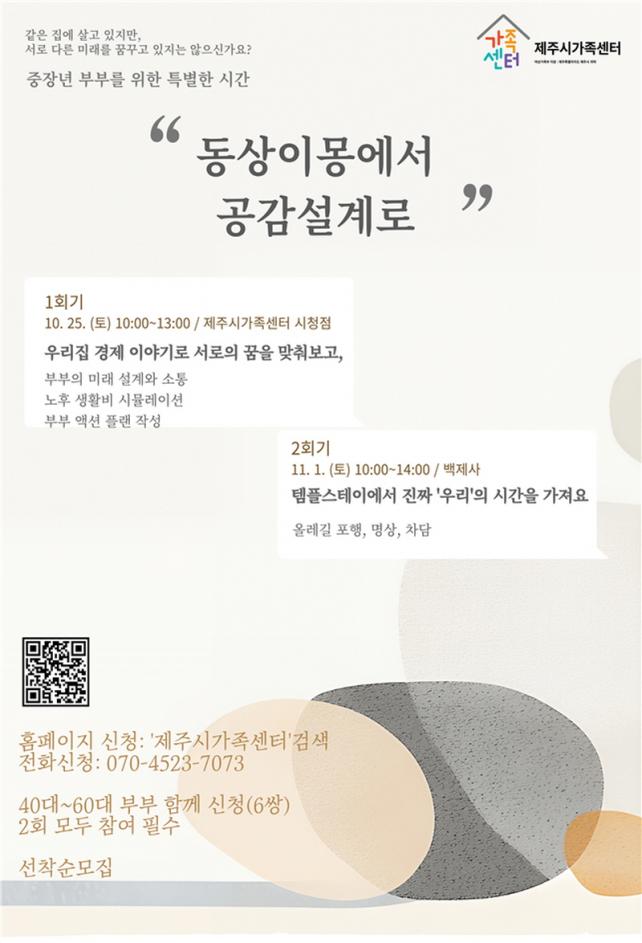 À̹ø ÇÁ·Î±×·¥Àº ÀÚ³àÀÇ ¾çÀ°ºÎÅÍ µ¶¸³, Á÷Àå ÀºÅð µî ´Ù¾çÇÑ »îÀÇ ÀüȯÁ¡¿¡ ³õ¿© ÀÖ´Â 40´ë~60´ë ÁßÀå³â ºÎºÎ 6½ÖÀ» ´ë»óÀ¸·Î ¼·ÎÀÇ ¹Ì·¡¸¦ °øÀ¯ÇÏ°í ¼³°èÇÒ ¼ö ÀÖµµ·Ï ±¸¼ºµÆ´Ù.