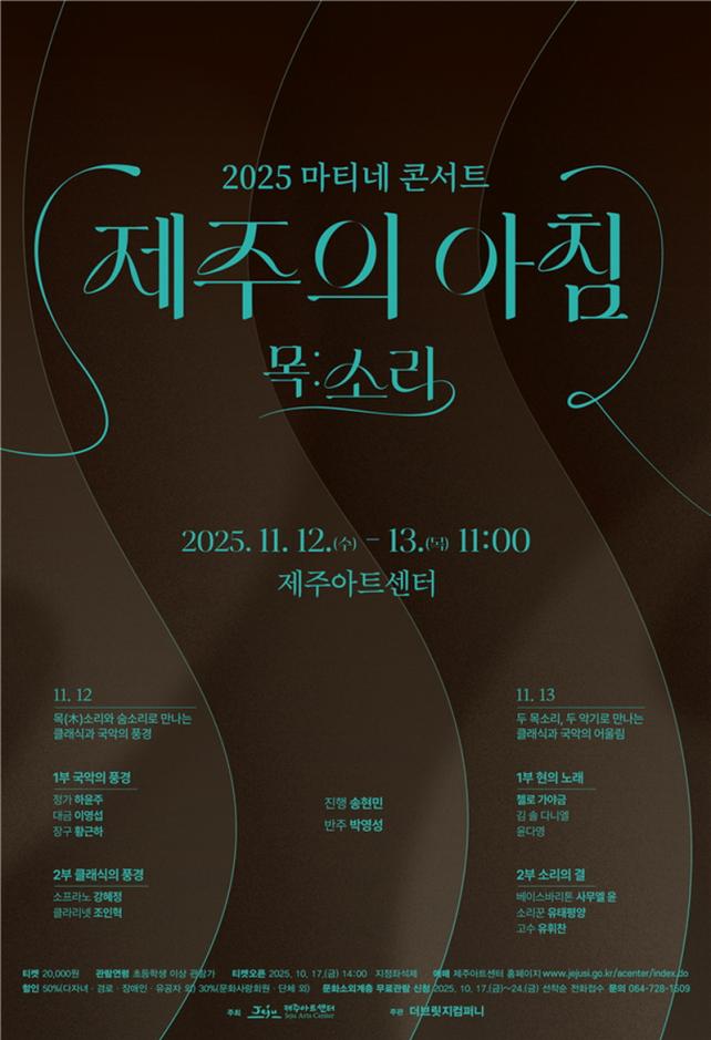 [Á¦ÁÖµµ¹Î½Å¹® = ¿À½ÂÅà ±âÀÚ] Á¦ÁÖ¾ÆÆ®¼¾ÅÍ´Â 11¿ù 12ÀÏ(¼ö)°ú 13ÀÏ(¸ñ) ÀÌÆ²°£ ¿ÀÀü 11½Ã ¸¶Æ¼³× Äܼ­Æ® ¡®Á¦ÁÖÀÇ ¾ÆÄ§¡¯À» °³ÃÖÇÑ´Ù.