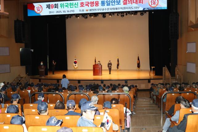 ´ëÇѹα¹¹«°ø¼öÈÆÀÚȸ Á¦ÁÖµµÁöºÎ°¡ ÁÖ°üÇÑ À̹ø °áÀÇ´ëȸ¿¡´Â ÁÖ¿ä ±â°üÀå°ú º¸ÈÆ´ÜüÀå, ¹«°ø¼öÈÆÀÚ È¸¿ø ¹× ±º À庴 µî 700¿© ¸íÀÌ Âü¼®ÇØ È£±¹¿µ¿õµéÀÇ ¼þ°íÇÑ Èñ»ýÀ» ±â¸®°í ¾Èº¸ ÀÇÁö¸¦ ´ÙÁ³´Ù.