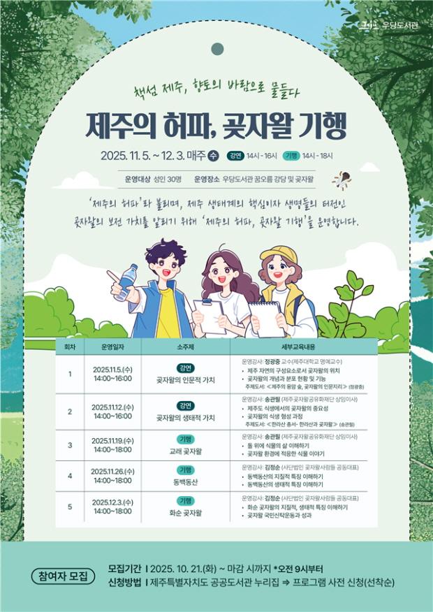 ÇÁ·Î±×·¥ Âü¿©¸¦ ¿øÇÏ´Â Á¦ÁÖ ½Ã¹ÎÀº 10¿ù 21ÀϺÎÅÍ Á¦ÁÖÆ¯º°ÀÚÄ¡µµ °ø°øµµ¼°ü ´©¸®Áý(https://www.jeju.go.kr/lib/) ⇨ ÇÁ·Î±×·¥ ⇨ »çÀü ½Åû¶õÀ» ÅëÇØ ¼±Âø¼ø Á¢¼öÇÏ¸é µÈ´Ù.
