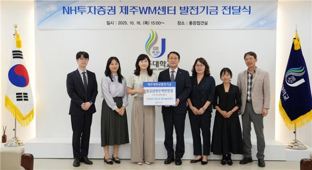 [Á¦ÁÖµµ¹Î½Å¹® = ¿À½ÂÅà ±âÀÚ] NHÅõÀÚÁõ±Ç Á¦ÁÖWM¼¾ÅÍ(ÇÑÀ¯¹Ì ¼¾ÅÍÀå)´Â Áö³­ 10¿ù 16ÀÏ Á¦ÁÖ´ëÇб³(ÃÑÀå ±èÀÏȯ)¸¦ ¹æ¹®ÇØ ¡®Ãµ¿øÀÇ ¾ÆÄ§¹ä¡¯ »ç¾÷ Áö¿øÀ» À§ÇÑ ¹ßÀü±â±Ý 3500¸¸¿øÀ» Àü´ÞÇß´Ù.
