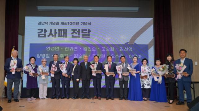 ±è¸¸´ö±â³ä°ü(°üÀå: °¿µÁø)Àº °³°ü 10ÁÖ³âÀ» ¸Â¾Æ¡®½Ã°£À» ¿«´Ù, ¹Ì·¡¸¦ ÀÕ´Ù¡¯¸¦ ÁÖÁ¦·Î ±â³ä½Ä°ú ÇÔ²² Ưº°Àü ¡¶½Ã°£À» ¿«´Ù, ¹Ì·¡¸¦ ÀÕ´Ù¡·¸¦ ¼±º¸¿´´Ù. À̹ø Àü½Ã´Â ±è¸¸´ö±â³ä°üÀÇ °ú°Å¡¤ÇöÀ硤¹Ì·¡¸¦ ÇϳªÀÇ ¼»ç·Î ¿«¾î, Áö³ 10³â°£ÀÇ Àü½Ã¡¤±³À°¡¤¿¬±¸ ¼º°ú¸¦ µ¹¾Æº¸°í ÇâÈÄ 10³âÀÇ ºñÀüÀ» Á¦½ÃÇÑ´Ù. ±â³ä½Ä¿¡´Â ¿À¿µÈÆ Á¦ÁÖÆ¯º°ÀÚÄ¡µµÁö»ç, ¾ç¿øÂù ±è¸¸´öÀç´Ü ÀÌ»çÀå, °íµÎ½É ±è¸¸´öÀç´Ü ÀÌ»ç, À¯°ü ±â°ü °ü°èÀÚ ¹× µµ¹Î µîÀÌ Âü¼®ÇØ ÀÚ¸®¸¦ ºû³Â´Ù.