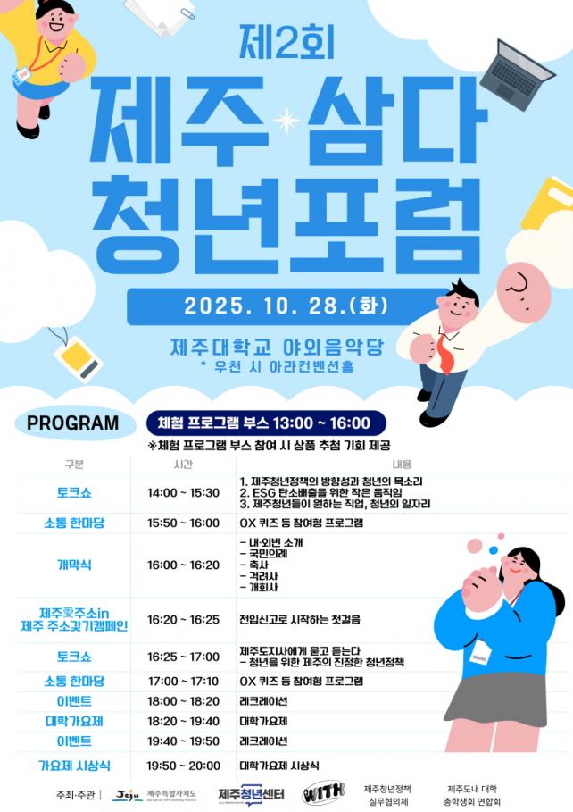 Æ÷·³Àº ¿ÀÈÄ 1½Ã û³â Âü¿©Çü üÇè ºÎ½º ¿î¿µÀ¸·Î ½ÃÀ۵ȴÙ. Á¦ÁÖû³âÁ¤Ã¥ ½Ç¹«ÇùÀÇü 10¿©°³ÀÇ ±â°üµéÀÌ ´Ù¾çÇÑ ÁÖÁ¦·Î ºÎ½º¸¦ ¿î¿µÇϸç, ºÎ½º üÇèÀ» ¸¶Ä£ û³âµé¿¡°Ô´Â ±â³äǰ°ú À̺¥Æ® ÀÀ¸ð ±âȸ°¡ Á¦°øµÈ´Ù. À̾îÁö´Â ù ¹øÂ° ÅäÅ©¼î¿¡¼´Â <Á¦ÁÖ Ã»³âÁ¤Ã¥>,