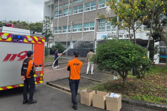 À̹ø ÈÆ·ÃÀº ûÁ¤¹ÙÀÌ¿Àº»ºÎ ¹ÙÀÌ¿À¼¾ÅÍ ÀÓÁ÷¿ø ¹× ¼¾ÅÍ ³» ÀÔÁÖ±â¾÷ ±Ù·ÎÀÚÀÇ È­Àç µî Àç³­ ¹ß»ý½Ã ´ëó´É·ÂÀ» ¹è¾çÇϱâ À§ÇØ ¸¶·ÃµÆÀ¸¸ç, ÈÆ·Ã¿¡´Â Á¦Áּҹ漭 ¾Æ¶ó119¼¾ÅÍ¿¡¼­ ¼Ò¹æ¡¤±¸±Þ´ë¿ø°ú ¼Ò¹æÆßÇÁÂ÷ µî Àη ¹× Àåºñ¸¦ Áö¿øÇß´Ù.