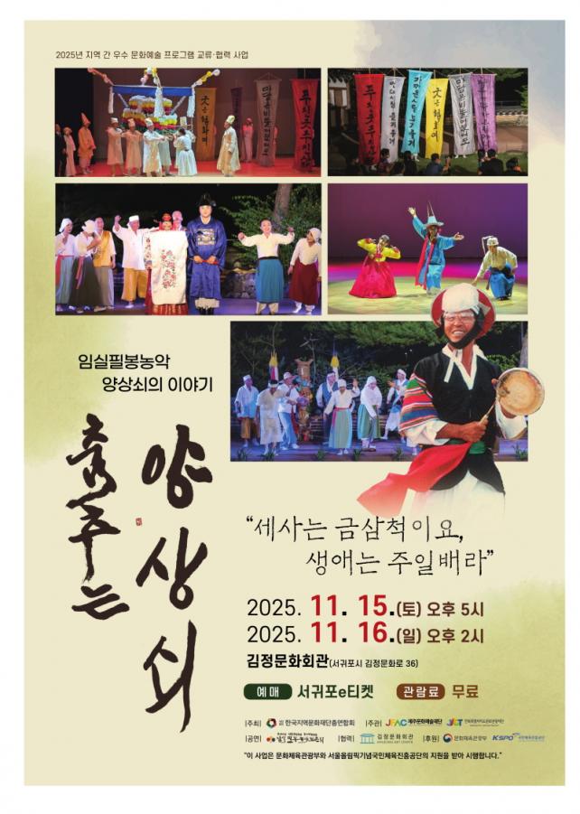 ¡°ÃãÃß´Â ¾ç»ó¼è¡±´Â À¯³×½ºÄÚ Àηù¹«Çü¹®ÈÀ¯»êÀÌÀÚ ±¹°¡¹«Çü¹®ÈÀçÀÎ ¡®ÀÓ½ÇÇʺÀ³ó¾Ç¡¯À» ¸ðƼºê·Î ÇÑ ÀüÅë ¿¬Èñ±ØÀ¸·Î, ÀüºÏ ÀӽDZº ÇʺÀ¸¶À»ÀÇ »î°ú °øµ¿Ã¼ Á¤½ÅÀ» Ç®¾î³½ ÀüºÏƯº°ÀÚÄ¡µµÀÇ ´ëÇ¥ »ó¼³ °ø¿¬ÀÌ´Ù. °øµ¿Ã¼ ¿¬ÈñÀÇ ÇÙ½É Àι°ÀÎ ¡®¾ç»ó¼è¡¯ÀÇ »ý¾Ö¸¦ Áß½ÉÀ¸·Î ³ó¾ÇÀÇ Àå´Ü°ú ¼»ç¸¦ Àü°³Çϸç, Áö¿ª Á¤Ã¼¼º°ú ¿¹¼ú¼ºÀ» µ¿½Ã¿¡ ´ã¾Æ³Â´Ù.