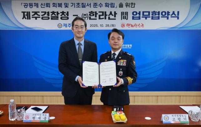 [Á¦ÁÖµµ¹Î½Å¹® = ¿À½ÂÅà ±âÀÚ] Á¦ÁÖ°æÂûû(ûÀå °íÆò±â) ¿¡¼­´Â 10¿ù 28ÀÏ ¢ßÇѶó»ê°ú ÇÔ²² ¡®°øµ¿Ã¼ ½Å·Ú ȸº¹°ú ±âÃÊÁú¼­ Áؼö È®¸³¡¯À» À§ÇÑ ¾÷¹«Çù¾àÀ» ü°áÇß´Ù.