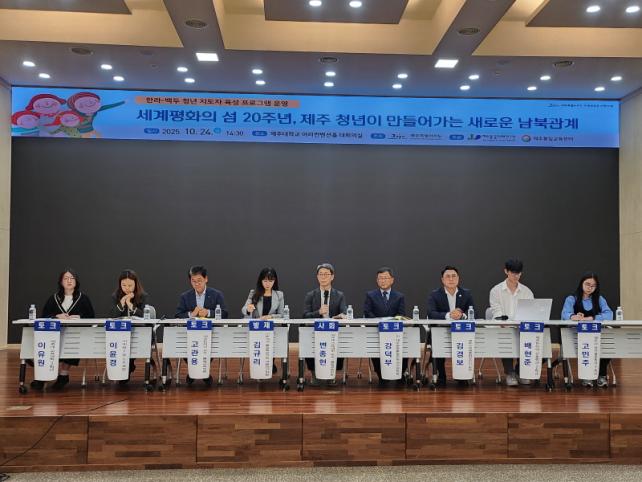 [Á¦ÁÖµµ¹Î½Å¹® = ¿À½ÂÅà ±âÀÚ] Á¦ÁÖÆ¯º°ÀÚÄ¡µµ°¡ ÁÖÃÖÇϰí Á¦ÁÖÅëÀϹ̷¡¿¬±¸¿ø(¿øÀå °í¼ºÁØ)°ú Á¦ÁÖÅëÀϱ³À°¼¾ÅÍ(¼¾ÅÍÀå ±èÀÏȯ Á¦ÁÖ´ëÇб³ ÃÑÀå)°¡ °øµ¿ÁÖ°üÇÏ´Â 'ÇѶó-¹éµÎ û³âÁöµµÀÚ À°¼º ÇÁ·Î±×·¥ ¿î¿µ ¼¼¹Ì³ª'°¡ 10¿ù 24ÀÏ(±Ý) ¿ÀÈÄ 2½Ã 30ºÐ Á¦ÁÖ´ëÇб³ ¾Æ¶óÄÁº¥¼ÇȦ ´ëȸÀǽǿ¡¼­ ¿­·È´Ù . '¼¼°èÆòÈ­ÀÇ ¼¶ 20ÁÖ³â, Á¦ÁÖ Ã»³âÀÌ ¸¸µé¾î°¡´Â »õ·Î¿î ³²ºÏ°ü°è'¶ó´Â ÁÖÁ¦·Î ÁøÇàµÈ À̳¯ Çà»ç´Â Á¦ÁÖÁö¿ª ´ëÇлý ¹× û³â, ÅëÀϰü·Ã Àü¹®°¡,Áö¿ª ÁֹΠµîÀÌ Âü¿©ÇØ ÅëÀÏ ¹Ì·¡¼¼´ëÀÇ ÆòÈ­¡¤ÅëÀÏÀǽÄÀ» Át¾çÇϱâ À§ÇÑ ´ë¾ÈÀ» ¸ð»öÇϱâ À§ÇÏ¿© ¸¶·ÃµÆ´Ù.