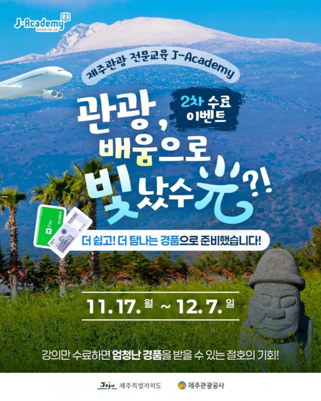 À̹ø À̺¥Æ®´Â Á¦ÁÖ°ü±¤ »ê¾÷ Á¾»çÀÚ ¹× °ü±¤ ºÐ¾ß¿¡ °ü½É ÀÖ´Â »ç¶÷À» ´ë»óÀ¸·Î Àû±ØÀûÀÎ ±³À° Âü¿© Ȱ¼ºÈ¸¦ À¯µµÇϱâ À§ÇØ ±âȹµÆ´Ù. ÀÌ¿¡, °ø»ç´Â J-AcademyÀÇ ÁÖ¿ä °ÁÂÀÎ Æ®·»µå ±³À°, Á÷¹«±³À°, Á¦ÁÖ ÀÌÇØ ±³À° ÄÜÅÙÃ÷¸¦ Áß½ÉÀ¸·Î ¼ö·á À̺¥Æ®¸¦ ÃßÁøÇϰí ÀÖ´Ù.