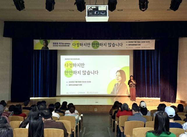 ÄܼƮ ÁÖÁ¦´Â¡º´ÙÁ¤ÇÏÁö¸¸ ¸¸¸¸ÇÏÁö ¾Ê½À´Ï´Ù¡»·Î Á¤¹®Á¤ ÀÛ°¡¿Í ÇÔ²² ÁøÇàµÆ´Ù. °ü°´µéÀº ½º½º·Î ¸¶À½À» µ¹¾Æº¸°í, ´ÙÁ¤ÇÔ ¼Ó¿¡¼ ´Ü´ÜÇÔÀ» ã¾Æ°¡´Â ½Ã°£À» °¡Á³´Ù. Á¦ÁÖµµ¹Î ¾à 120¿©¸íÀÌ Âü¼®Çϸç Å« È£ÀÀÀ» ¾ò¾ú´Ù.