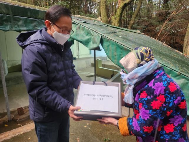 Áְź¹Áö¼¾ÅÍ´Â À¾¡¤¸é¡¤µ¿ÀÇ ÃßõÀ» ¹ÞÀº µµ³» ÁÖ°ÅÃë¾à°èÃþ 50°¡±¸(Á¦Áֽà 26°¡±¸, ¼±ÍÆ÷½Ã 24°¡±¸)¸¦ ´ë»óÀ¸·Î ¡âÀå°© ¡â³Ø¿ö¸Ó ¡â±Í¸¶°³ ¡â¹æÇѵ¡½Å ¡â¸¶½ºÅ© ¡âÇÖÆÑ µîÀ¸·Î ±¸¼ºµÈ ȤÇѱ⠹æÇÑ¿ëǰÀ» Àü´ÞÇß´Ù.