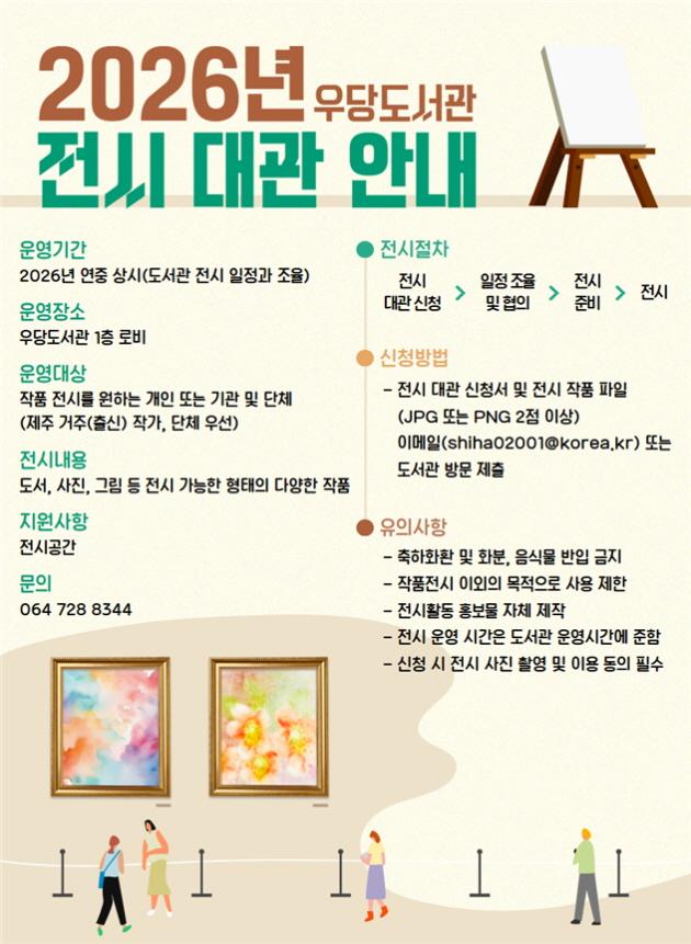 ´ë°ü ½ÅûÀº ¿¬Áß »ó½Ã Á¢¼öÇϸç, ´ë°üÀ» Èñ¸ÁÇÏ´Â °³ÀÎ ¶Ç´Â ±â°ü¡¤´Üü´Â ½Åû¼¸¦ ÀÛ¼ºÇØ À̸ÞÀÏ(shiha02001@korea.kr)·Î Á¦ÃâÇϰųª ¿ì´çµµ¼°üÀ» Á÷Á¢ ¹æ¹®ÇØ Á¢¼öÇÏ¸é µÈ´Ù. ÀÚ¼¼ÇÑ »çÇ×Àº Á¦ÁÖµµ°ø°øµµ¼°ü ´©¸®Áý(https://www.jeju.go.kr/lib/), Ã¥¼¶ Á¦ÁÖ ´©¸®Áý(http://woodang.jejusi.go.kr/), ¿ì´çµµ¼°ü ÀνºÅ¸±×·¥(https://www.instagram.com/woodanglib/)¿¡¼ È®ÀÎÇÒ ¼ö ÀÖÀ¸¸ç, ±âŸ ¹®ÀÇ´Â ¿ì´çµµ¼°ü(¢Ï064-728-8344)À¸·Î ÇÏ¸é µÈ´Ù.