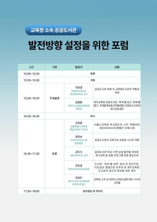 Á¦ÁÖµµ¼­°ü °ü°èÀÚ´Â ¡°À̹ø Æ÷·³Àº ±³À°Ã» ¼Ò¼Ó °ø°øµµ¼­°üÀÇ ±â´É°ú ¿ªÇÒÀ» Á¡°ËÇÏ°í °­Á¡°ú °³¼± °úÁ¦¸¦ µµÃâÇÏ´Â ¶æ±íÀº ÀÚ¸®°¡ µÉ °ÍÀ¸·Î ±â´ëÇÑ´Ù¡±°í ¸»Çß´Ù.