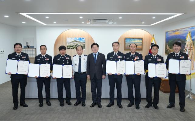 Á¦ÁÖµµ´Â 31ÀÏ µµÃ» »ï´ÙȦ¿¡¼ ¼Ò¹æ·É ÀÌ»ó ¼Ò¹æ°ø¹«¿øÀ» ´ë»óÀ¸·Î ÀÓ¿ëÀå ¼ö¿©½ÄÀ» °³ÃÖÇß´Ù. ¿À¿µÈÆ Áö»ç°¡ Á÷Á¢ ÀÓ¿ëÀåÀ» ¼ö¿©Çϸç ÃàÇÏÀÇ ¸¶À½À» ÀüÇß´Ù.