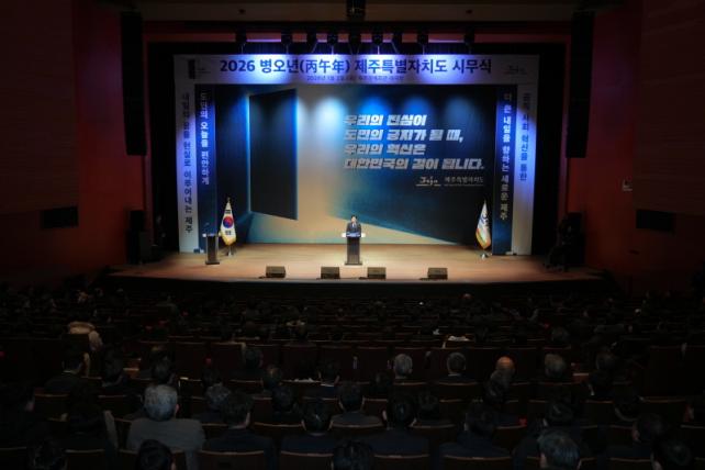 ¿À¿µÈÆ Á¦ÁÖµµÁö»ç´Â 2ÀÏ ¿ÀÀü ¹®¿¹È¸°ü ´ë±ØÀå¿¡¼ ¿¸° 2026³â ½Ã¹«½Ä¿¡¼ "±Û·Î¹ú ´ëÀüȯ ¼Ó¿¡¼ ¸¶Ä§³» Á¦ÁÖ¿¡ ±âȸ°¡ ã¾Æ¿Ô´Ù¡±¸ç À̰°ÀÌ ¹àÇû´Ù.