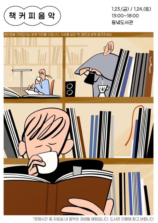 ¿À´Â 23Àϰú 24ÀÏ¿¡´Â ¡®°Ü¿ïÀ» ´àÀº Ã¥°ú À½¾Ç¡¯À» ÁÖÁ¦·Î ¿À´Â ¿ÀÈÄ 1½ÃºÎÅÍ 6½Ã±îÁö ¿î¿µµÇ¸ç ±â°£¿¡ °³Àοë ÄÅÀ» ÁöÂüÇÏ°í µµ¼­°ü 2Ãþ Á¾ÇÕÀÚ·á½ÇÀ» ¹æ¹®ÇÏ´Â ÀÌ¿ëÀÚ´Â °Ü¿ï °¨¼ºÀÌ ´ã±ä Àü½Ã¿Í À½¾ÇÀ» °¨»óÇÏ¸ç »ç¼­°¡ ³»·ÁÁÖ´Â µû¶æÇÑ ¿øµÎÄ¿ÇǸ¦ ¹«·á·Î Áñ±æ ¼ö ÀÖ´Ù.