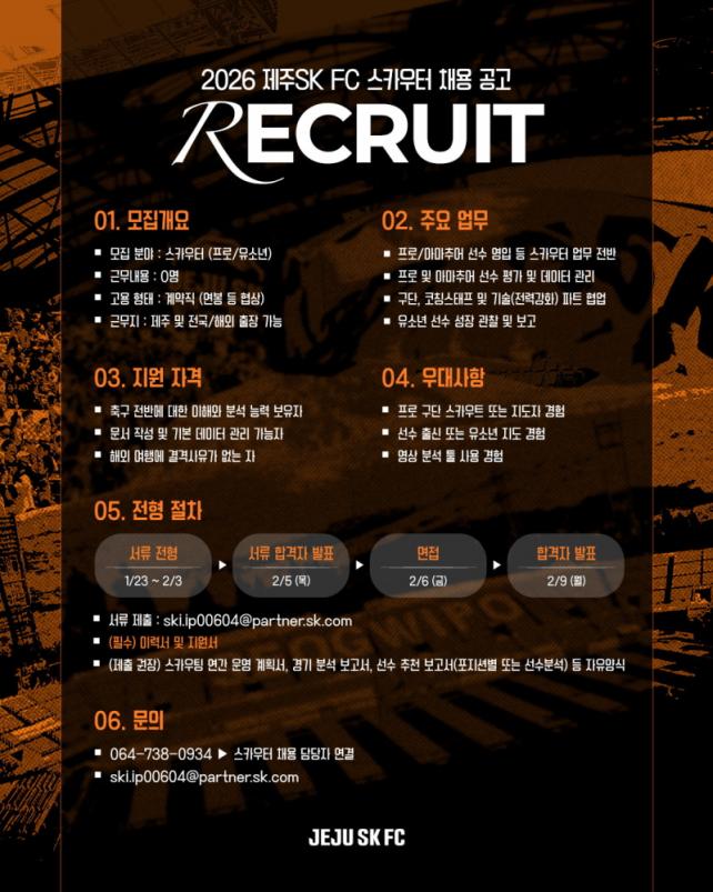 [Á¦ÁÖµµ¹Î½Å¹® = ¿À½ÂÅà ±âÀÚ] Á¦ÁÖSK FC(ÀÌÇÏ Á¦ÁÖSK)°¡ ±¸´Ü °æÀï·Â °­È­¸¦ À§ÇØ ÇÁ·Î¡¤À¯¼Ò³â ½ºÄ«¿ìÅ͸¦ °ø°³ ¸ðÁýÇÑ´Ù.