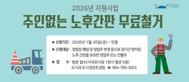 À̹ø »ç¾÷Àº ¿µ¾÷Àå Æó¾÷À̳ª ¿µ¾÷ÁÖ º¯°æ µîÀ¸·Î Àå±â°£ ¹æÄ¡µÈ °£ÆÇÀ» ö°ÅÇØ ÁÖ´Â »ç¾÷À¸·Î, Á¦ÁÖÆ¯º°ÀÚÄ¡µµ ¿Á¿Ü±¤°íÇùȸ ¼±ÍÆ÷½ÃÁöºÎ(ÁöºÎÀå ±èÁ¤ÁØ)¿¡¼ Àç´É±âºÎÀÇ ÀÏȯÀ¸·Î ÃßÁøµÈ´Ù.