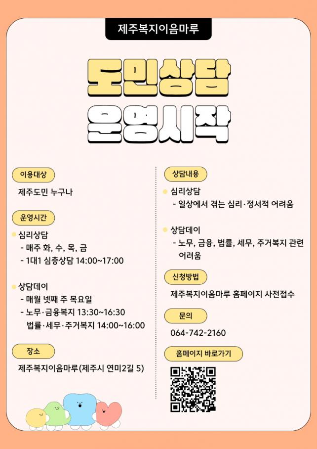 Á¦ÁÖº¹ÁöÀÌÀ½¸¶·ç »ó´ãÀ» Èñ¸ÁÇÏ´Â Á¦ÁÖµµ¹ÎÀº ´©±¸³ª ½ÅûÀÌ °¡´ÉÇϸç ȨÆäÀÌÁö(www.bokji-ieum.or.kr)¸¦ ÅëÇØ »çÀü½Åû ÈÄ ÀÌ¿ëÇÒ ¼ö ÀÖ´Ù.
