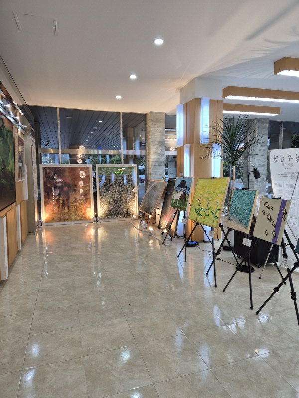 ±¸ÀÔ ÀÛǰ¿¡´Â Á¦ÁÖ ÀÚ¿¬°ú Á¤Ã¼¼ºÀ» ´ãÀº ȸȰ¡ ´Ù¼ö Æ÷ÇԵǾî Á¦ÁÖÀÇ Ç³°æ°ú Á¤¼¸¦ ´ã¾Æ û»ç °ø°£ÀÇ Ç°°ÝÀ» ³ôÀ̰í ÀÖÀ¸¸ç, Àü°¢¡¤»çÁø¡¤µðÀÚÀÎ µî ´Ù¾çÇÑ À帣ÀÇ ÀÛǰµµ º»Ã» º¹µµ¿Í ¹Î¿ø½Ç µî °ø¿ë°ø°£¿¡ Àü½ÃµÅ û»ç°¡ »ö´Ù¸¥ °¶·¯¸® ¿ªÇÒÀ» Çϰí ÀÖ´Ù.