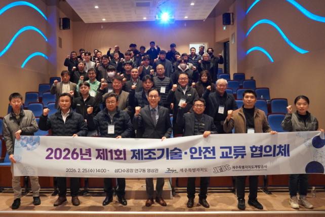 Á¦ÁÖ°³¹ß°ø»ç´Â 25ÀÏ Á¶ÃµÀ¾ ±³·¡¸® Á¦ÁÖ»ï´Ù¼ö°øÀå¿¡¼ µµ³» Á¦Á¶¾÷ü ½Ç¹«ÀÚµéÀÌ Âü¼®ÇÑ °¡¿îµ¥ ¡®2026³âµµ Á¦1ȸ Á¦ÁÖ Á¦Á¶¾÷ ±â¼ú¡¤¾ÈÀü ±³·ù ÇùÀÇü¡¯¸¦ °³ÃÖÇÏ¿´´Ù.