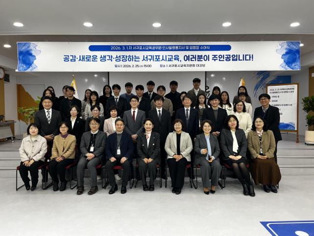 ±èÁöÇý ±³À°ÀåÀº Ãà»ç¸¦ ÅëÇØ ±³Á÷ÀÇ Ã¹¹ßÀ» ³»µó´Â ½Å±Ô±³»ç¿Í »õ·Î¿î Á÷¹«¸¦ ¸Ã°Ô µÈ ½ÂÁøÀڵ鿡°Ô ÃàÇϸ¦ ÀüÇÏ¸ç ±³À° ÇöÀå¿¡¼ ÇÊ¿äÇÑ ÁøÁ¤¼º Àִ ŵµ¿Í ±³À°°øµ¿Ã¼¿ÍÀÇ ¼ÒÅëÀÇ Á߿伺À» °Á¶Çß´Ù. ÀÌ¾î ¡°¿ì¸® ±³À°Áö¿øÃ»ÀÇ ºñÀüÀÎ ¡®°ø°¨, »õ·Î¿î »ý°¢, ¼ºÀåÇÏ´Â ¼±ÍÆ÷½Ã ±³À°¡¯À» ½ÇÇöÇϱâ À§ÇØ °¢ÀÚÀÇ ÀÚ¸®¿¡¼ ÃÖ¼±À» ´ÙÇØ ´Þ¶ó¡±°í ´çºÎÇß´Ù.